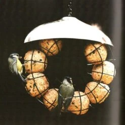 De halve kokosnoot bevat een energierijke mengeling van pindanoten, oliën en vetten waar onze gevleugelde tuindieren graag van smullen.