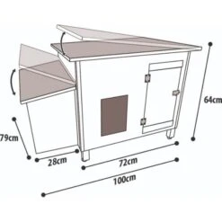 Afhankelijk van de grootte van de dieren kan je de voedersilo verhogen met de vier bijgeleverde pootjes. De silo kan ook zonder pootjes worden gebruikt. De silo kan buiten worden geplaatst dankzij het grote dak dat er voor zorgt dat het hemelwater niet in de graanschaal terecht komt.